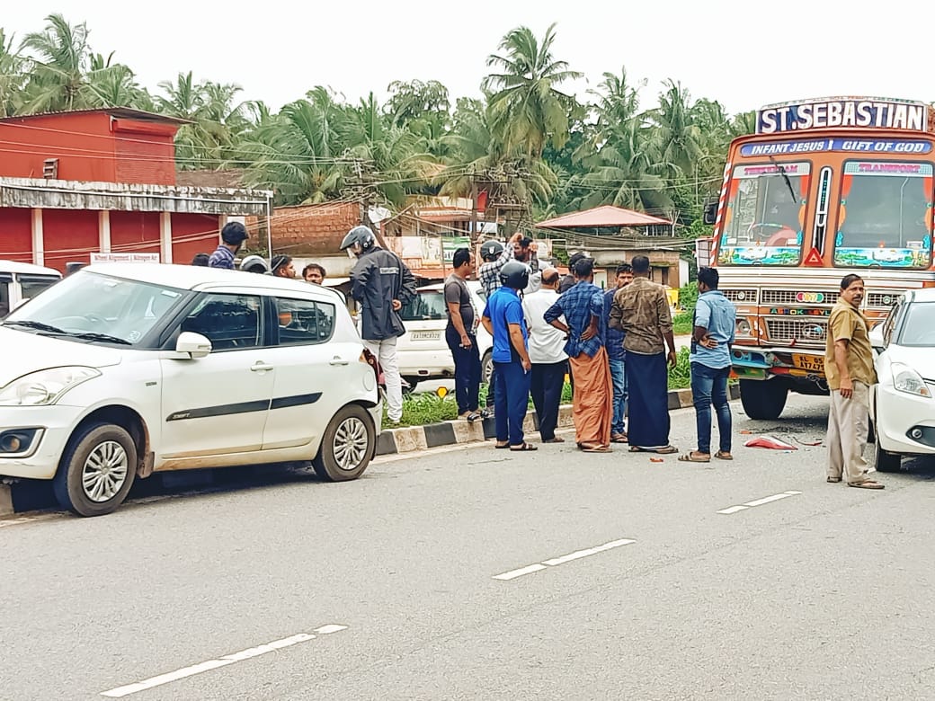 ರಡ್ಡ್ ಕಾರ್, ಒಂಜಿ ಸ್ಕೂಟರ್ ಬೊಕ್ಕ ಒಂಜಿ ಲಾರಿ ಬೆರಿ ಬೆರಿ ತಾಂಟ್‌ದ್ ಗಾಡಿಲೆಗ್ ಪೆಟ್ಟ್ ಆತ್ಂಡ್. ಜನಕ್ಲೆಗ್ ಯೆಲ್ಯ ಗಾಯ ಆತ್ಂಡ್. ಏರೆನಲ ಜೀವಗ್ ಅಪಾಯ ಇಜ್ಜಿ ಪಂದ್ ಗೊತ್ತಾತ್ಂಡ್. ಪೊಲೀಸ್ ದಕುಲು ಜಾಗೆಗ್ ಬೈದೆರ್.