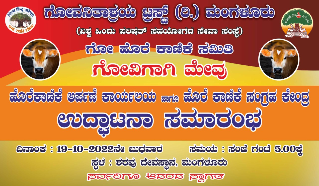 ಗೋವನಿತಾಶ್ರಯ ಟ್ರಸ್ಟ್ (ರಿ.) ಕುಡ್ಲ (ವಿಶ್ವಹಿಂದೂ ಪರಿಷತ್ ಸಹಯೋಗದ ಸೇವಾ ಸಂಸ್ಥೆ) ಗೋ ಹೊರೆಕಾಣಿಕೆ ಸಮಿತಿದ ಗೋವಿಗಾಗಿ ಮೇವು, ಹೊರೆಕಾಣಿಕೆ ಅರ್ಪಣೆ