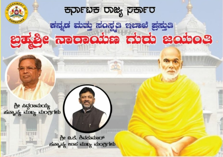 ಬೆಂಗ್ಲೂರು : ಕನ್ನಡ ಬೊಕ್ಕ ಸಂಸ್ಕೃತಿ ಇಲಾಖೆ ಪ್ರಸ್ತುತಿದ ಮುತಾಲಿಕೆಡ್ ಆ.31ಕ್ಕ್ ನಾರಾಯಣ ಗುರು ಜಯಂತಿ ನಡಪರೆ ಉಂಡು.