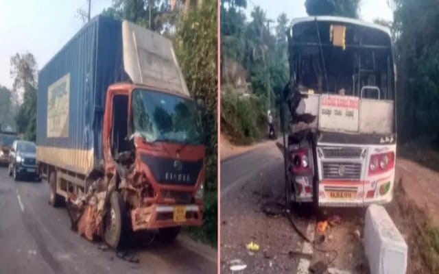 Bantwal: An accident between a container lorry and a private bus in front of the Vaidyanath temple on…
