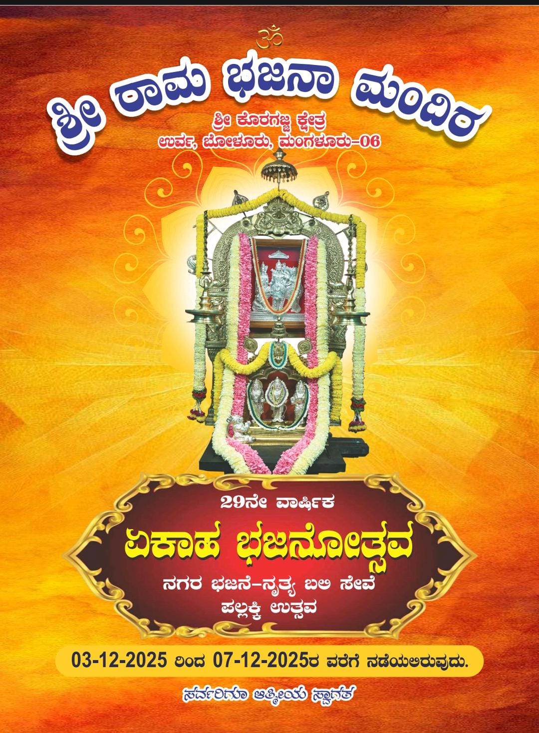 ಕುಡ್ಲ : ಶ್ರೀ ರಾಮ ಭಜನಾ ಮಂದಿರ , ಶ್ರೀ ಕೊರಗಜ್ಜ ಕ್ಷೇತ್ರ ಉರ್ವ ಬೋಳೂರು ಮುಲ್ತ 29 ನೇ ವರ್ಷದ ಏಕಾಹ ಭಜನೋತ್ಸವ,…