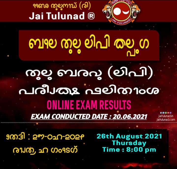 ಕರ್ನಾಟಕ ತುಳು ಸಾಹಿತ್ಯ ಅಕಾಡೆಮಿ ಜೈ ತುಳುನಾಡ್ (ರಿ.) ಯುವವಾಹಿನಿ (ರಿ.) ಕೂಳೂರು ಎಗ್ಗೆ ಒಟ್ಟು ಸೇರಿಗೆಡ್ ತುಲು ಲಿಪಿ ಪರೀಕ್ಷೆ
