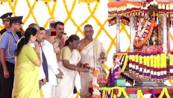 ಮೈಸೂರ್: ನಾಡದೇವತೆ ಚಾಮುಂಡೇಶ್ವರಿ ದೇವಿಗ್ ಪೂ ಪಾಡುನ ಮುಖೇನ ರಾಷ್ಟ್ರಪತಿ ದ್ರೌಪತಿ ಮುರ್ಮು ಮೇರ್ ವಿಶ್ವವಿಖ್ಯಾತ ಮೈಸೂರ್ ದಸರಾಗ್ ಚಾಲನೆ ಕೊರಿಯೆರ್. ಮೈಸೂರ್ಗ್ ಬತ್ತಿನ…
